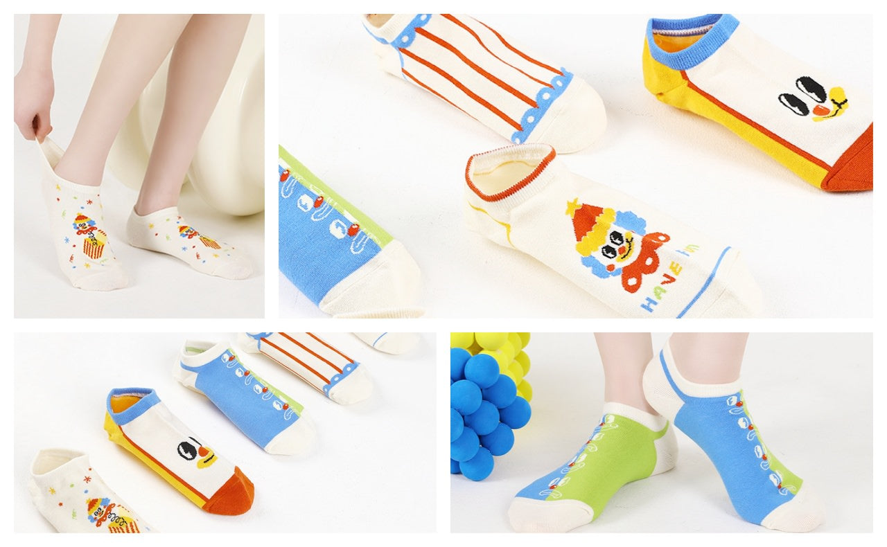 Beligogo's Cartoon Clown Low Cut Boat Socks add a touch of whimsy to your summer style. Crafted with soft, breathable cotton fabric, these socks keep your feet feeling cool and comfortable even on the hottest days.